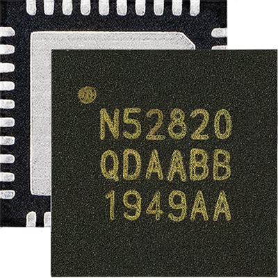 Nordic现在提供nRF52820工程样品,采用5x5 mm QFN40封装,具有18个GPIO,并且与Nordic的nRF52833 SoC可以复用PCBA。